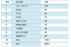 亞洲成為新增長極,全球最大生產商產能向沙特轉移 2018年,世界丙烯腈產能686.3萬噸,產量595.5萬噸,裝置開工率86.8%。生產主要...