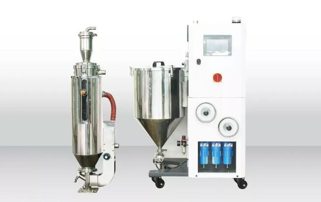 ????????該機器由控制主機,儲料桶,干燥料桶三部分組成。機器搭配50L的儲料桶,可調干燥料桶的料位可在8~16L范圍內調節,適用產量1.5~4kg/h。內置制氮設備,只需要接入壓縮空氣即可產生所需氮氣,其氮氣濃度最高可達99%,同時機器配有氮氣濃度顯示,能夠實時監測氮氣濃度變化且可根據需求調整氮氣濃度。