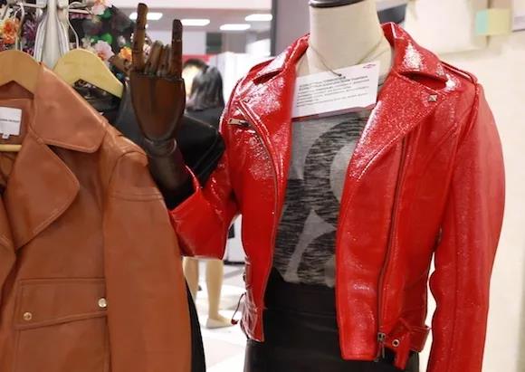 ????????陶氏化學(xué)的展臺一角,四件人造革服裝擺放在衣架上。這是該公司在中國首發(fā)的水性聚氨酯產(chǎn)品,被應(yīng)用于這些人造革產(chǎn)品的生產(chǎn)過程中。