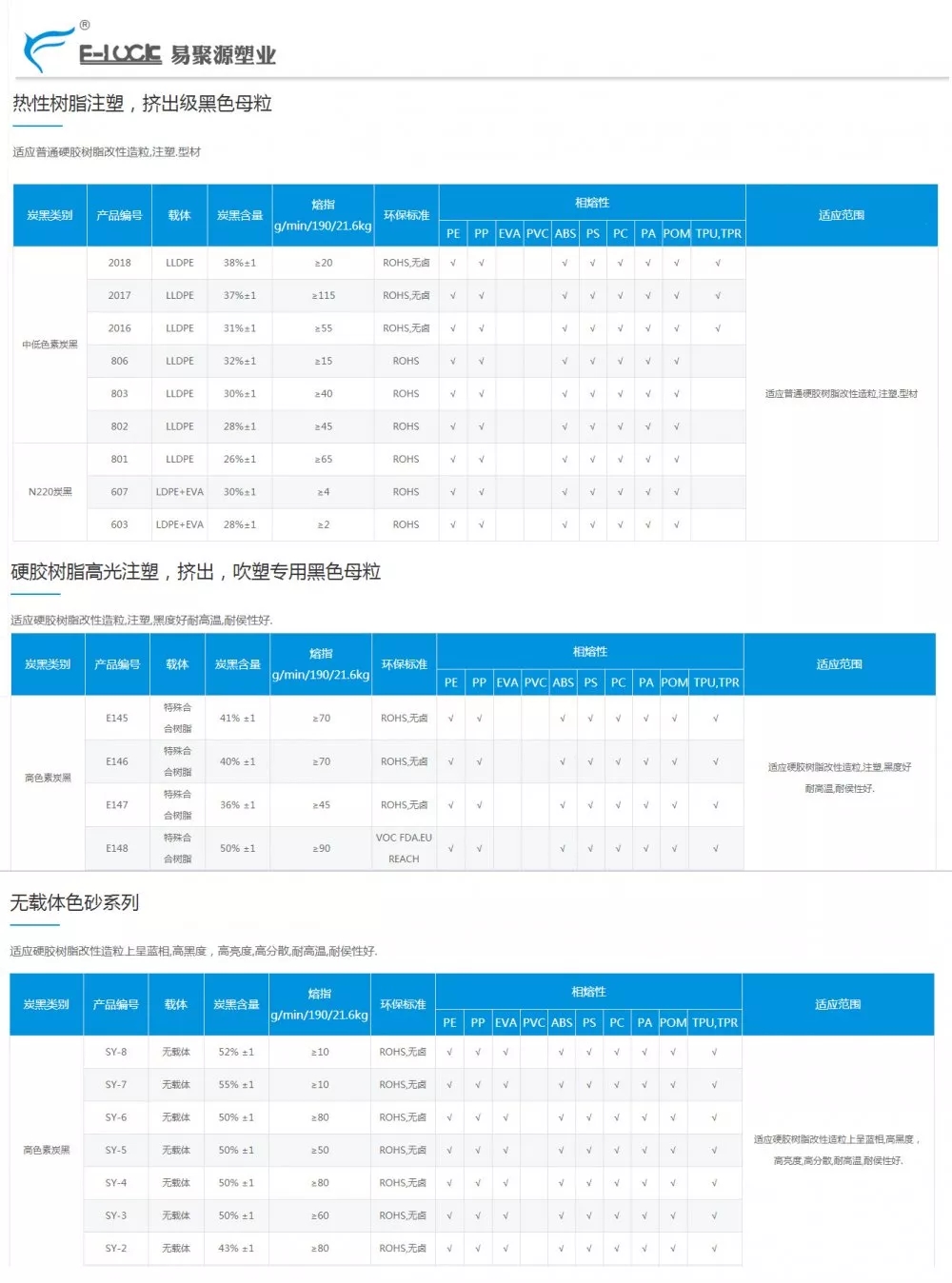 E-LUCK部分產(chǎn)品性能表