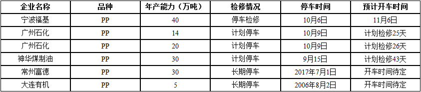 ????????國(guó)內(nèi)PP裝置檢修情況匯總