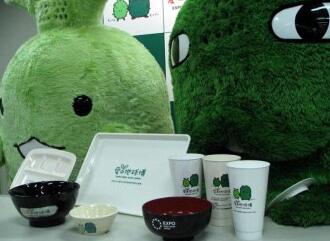 早在2005年,日本就在中部愛知縣舉行的世界博覽會上展示可生物降解的塑料杯和餐具。(圖片來源:日本每日新聞社)