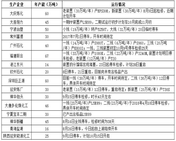 近期聚丙烯檢修裝置動態一覽