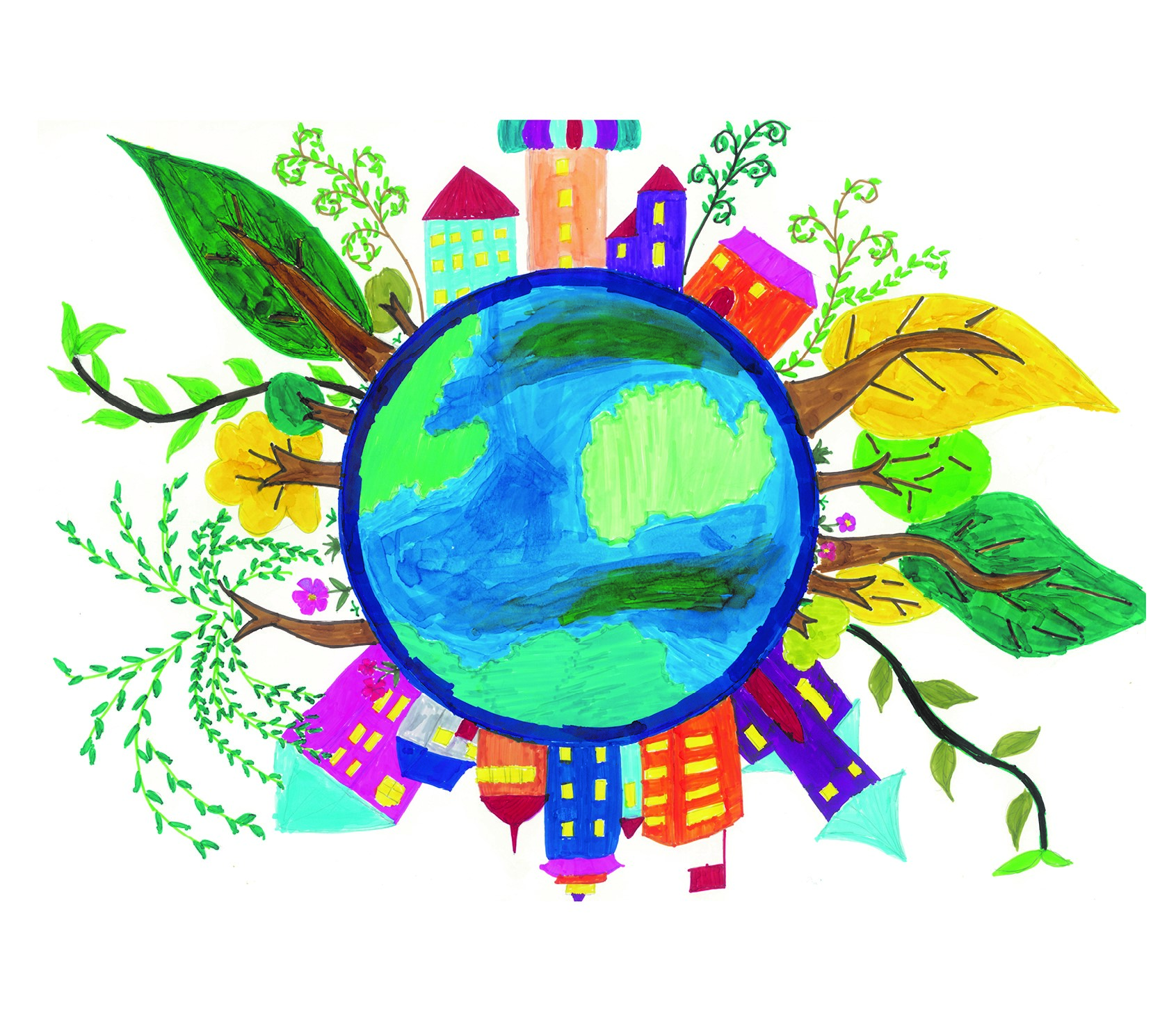 CPCIC十周年伴手禮“我眼中的綠色家園”。 (來源:由鎮(zhèn)江學(xué)府路小學(xué)二年級(jí)一班學(xué)生王思雨繪制)