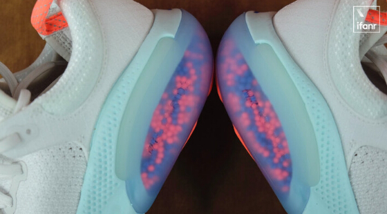 ????????作為這個技術的核心,相信大家也看到了,就是鞋底里的無數個彩色小球。耐克表示,他們從 150 多種材料里面尋找,終于找到了這個名為 TPE 的材料。聽起來挺不容易的,但是想到愛迪生為了發明電燈嘗試了 1600 多種材料,還是一個人在嘗試,所以這么看耐克這么大公司的這個嘗試也還能接受。