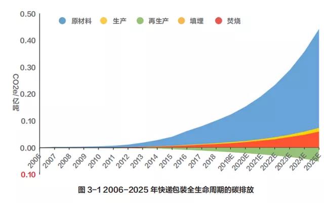 引起快遞包裹量增長的情況相契合。2010 年快遞包裝產生 61.15 萬噸碳排放,2018 年激增到1303.10 萬噸,須種植 7.1 億顆樹木才能中和掉。若不采取有效的綠色化政策,2025 年我國快遞包裝在全生命周期的碳排放量將達到 5706.10萬噸??梢?,面對激增的快遞包裝碳排放,電商平臺和快遞公司制定和施行快遞包裝綠色化管理十分緊迫。