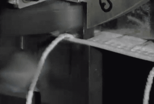 這時候出來的原先已經裁斷好的口罩們,再次被連到了一起,這真的是自古多情空余恨,此恨綿綿無絕期...