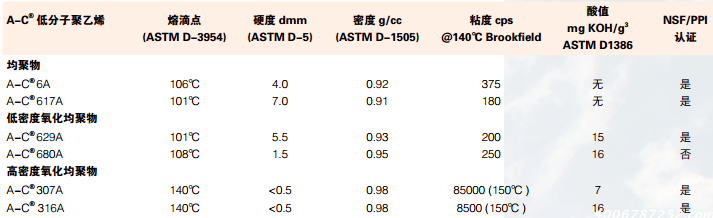霍尼韋爾AC316A氧化聚乙烯蠟技術與應用,性能指標類型高密度氧化均聚物
