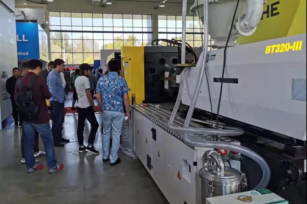 ????????10月9日,烏茲別克斯坦塔什干國(guó)際塑料橡膠展覽會(huì)(Plastex 2019)正式開(kāi)幕。博創(chuàng)協(xié)同烏茲別克斯坦代理參加此次展會(huì),并展出兩臺(tái)注塑機(jī)。一臺(tái)BT320-III注塑機(jī)生產(chǎn)一出48腔PET瓶胚,另一臺(tái)BS120-III伺服節(jié)能注塑機(jī)則生產(chǎn)一出12腔配套瓶蓋。瓶胚及瓶蓋產(chǎn)品貼近市場(chǎng)需求,吸引眾多新老客戶駐足了解。