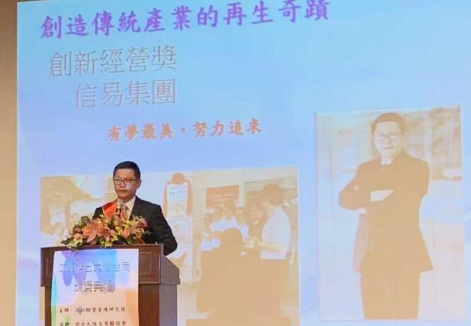 ????????此次評選活動主辦方為臺北經營管理研究院,該機構旨在當下競爭劇烈的微利時代,促進臺灣企業轉型升級。大陸臺商獎到今年已走入第七屆,包含外銷杰出、內銷典范、連鎖標竿、綠色節能、轉型升級、接班傳承、創新經營、協會貢獻、兩岸貢獻、回饋鄉里,今年還增加青年創業,共11大類獎項,信易非常榮幸獲得創新經營獎。