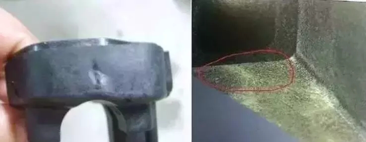 ????????但在玻纖增強尼龍注射成型過程中,“浮纖”現象經常出現。浮纖現象是玻纖外露造成的。白色的玻纖在塑料熔體充模流動過程中浮露于外表,待冷凝成型后便在塑料件表面形成放射狀的白色痕跡,當塑料件為黑色時會因色澤的差異加大而更加明顯。