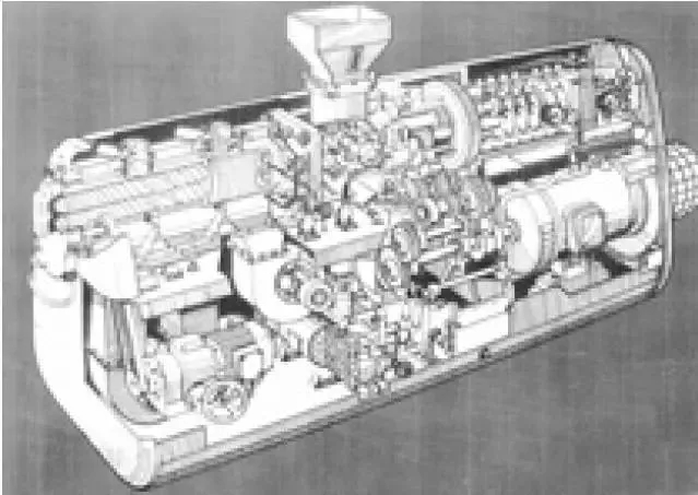 ????????1939年,Colombo對(duì)雙螺桿擠出機(jī)進(jìn)行改進(jìn),最大直徑做到109mm。同年,他獲得了第一個(gè)客戶——德國(guó)IG法本公司。雙螺桿擠出機(jī)開始得到市場(chǎng)認(rèn)可。